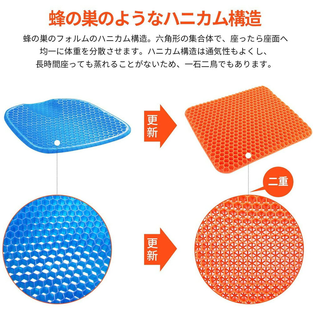 【2021最新版】ゲルクッション 二重 ハニカム構造 無重力 クッション 超通気 座布団 四季通用 蒸れない 座り心地抜群 両面使用可能 在宅勤務 テレワーク オフィス 自宅 車 ゲーミングチェア 椅子用 洗えるカバー付き