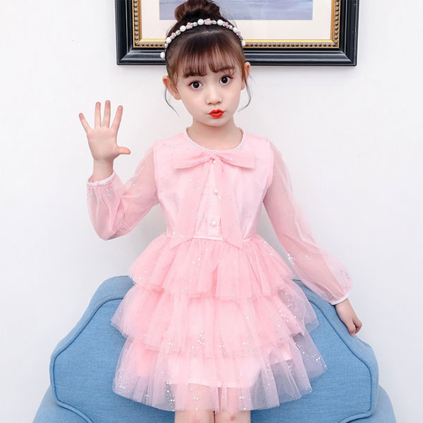 韓国子供服 ワンピース 女の子 プリンセス 長袖ワンピ ピンク シャンパン 可愛い 蝶結び 姫系 膝上丈 姉妹 お祝い プレゼント 卒園式 入学式 卒業式 発表会 110cm 120cm 130cm 140cm 150cm 160cm