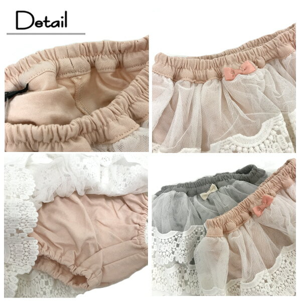 【30%OFFセール】ラポシェビスキュイ〔La poche biscuit〕レースフリル付きブルマ(グレー・ピンク)(70-80cm)